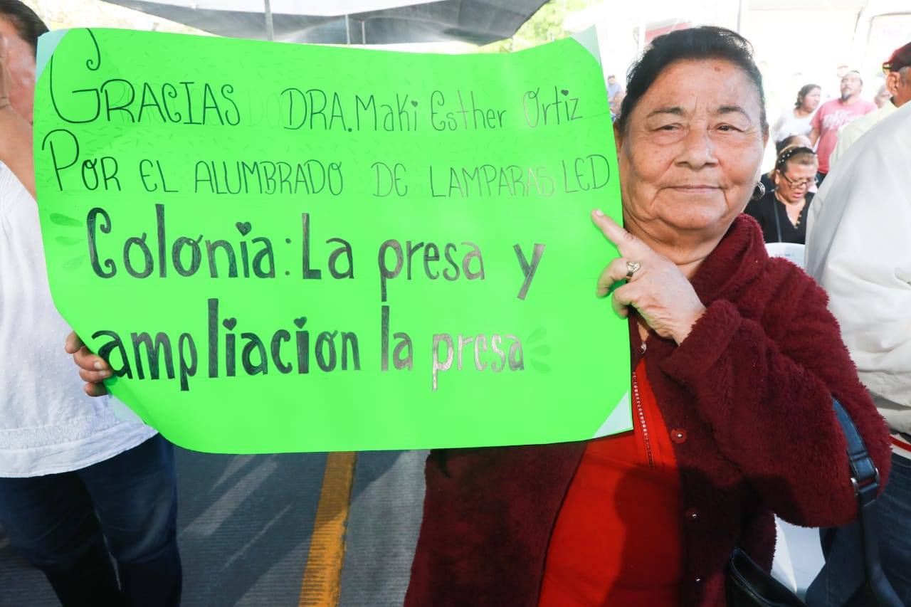 Una comunidad satisfecha por la inversión de 111 Millones de Pesos, reunida en la colonia La Presa, recibió a la Alcaldesa de esta ciudad, Maki Esther Ortiz Domínguez, en la calle 2 de Febrero, pavimentada por el Gobierno Municipal, con un monto de 6 Millones 731 Mil Pesos.