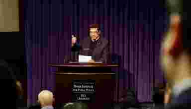 El mandatario tamaulipeco fue recibido y acompañado por Tony Payan, Director del Centro para Estados Unidos y México del Instituto Baker.