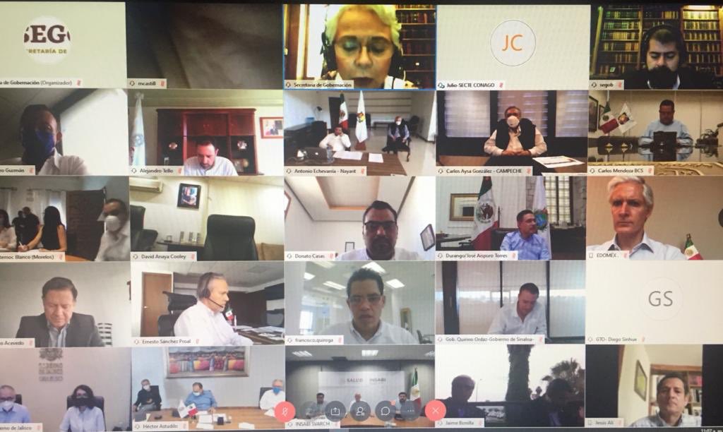 Los integrantes de la Conferencia Nacional de Gobernadores sostuvieron hoy una reunión de trabajo virtual con autoridades del Gobierno Federal, en la que analizaron la estrategia del regreso a la actividad económica en las entidades del país para definir acuerdos y coordinar los trabajos la Federación y los gobiernos de los estados, en esta etapa del COVID-19.