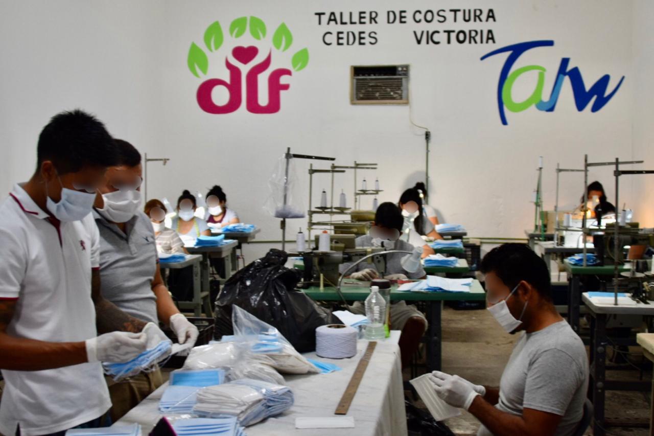 Como parte de las acciones que realiza el Gobierno del Estado para atender la contingencia generada por el COVID-19, la Secretaría de Seguridad Pública informó que, se dio inicio con la elaboración de cubrebocas en el Centro de Ejecución de Sanciones (CEDES) de Ciudad Victoria, artículos que serán utilizados por la Administración Estatal donde se requieran.