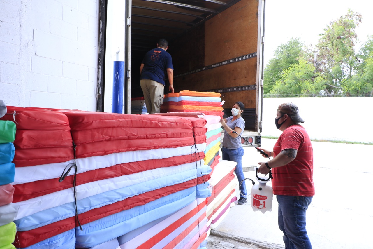 En suma, a los municipios afectados llegarán 40 mil 505 colchonetas, 276 mil litros de agua embotellada, 10 mil 126 despensas, 40 mil 505 cobertores, 10 mil 126 paquetes de limpieza para el hogar e igual número de paquetes de aseo personal.